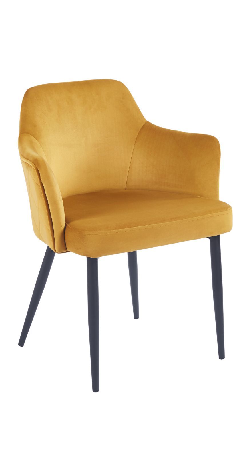 Características: silla con la estructura de acero reforzada en color negro, las patas también son metálicas. La parte superior de la silla está acolchada y tapizada en terciopelo. La silla es muy elegante y moderna.